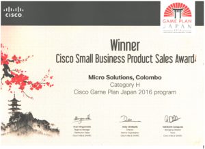 Certificate of Achievement for achieving the highest sales in Category H of Cisco Game Plan Japan 2016 programAugust 2, 2017 in Awards / Company News by Lalinda Dassanayake Certificate of Achievement for achieving the highest sales in Category H of Cisco Game Plan Japan 2016 program